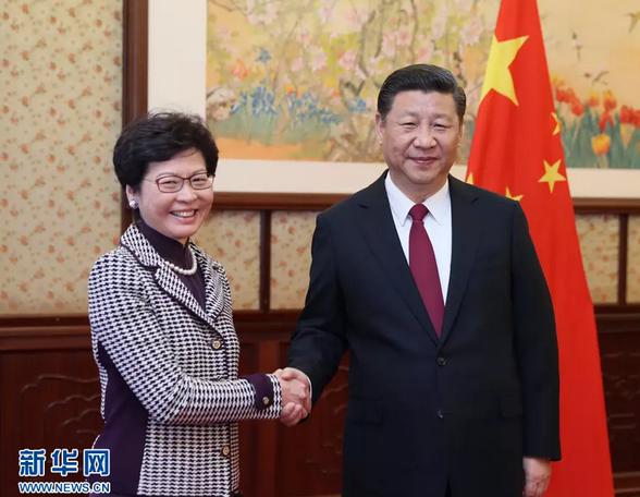 图为:2017年4月11日,国家主席习近平在中南海会见新当选并获中央政府任命的香港特别行政区第五任行政长官林郑月娥。